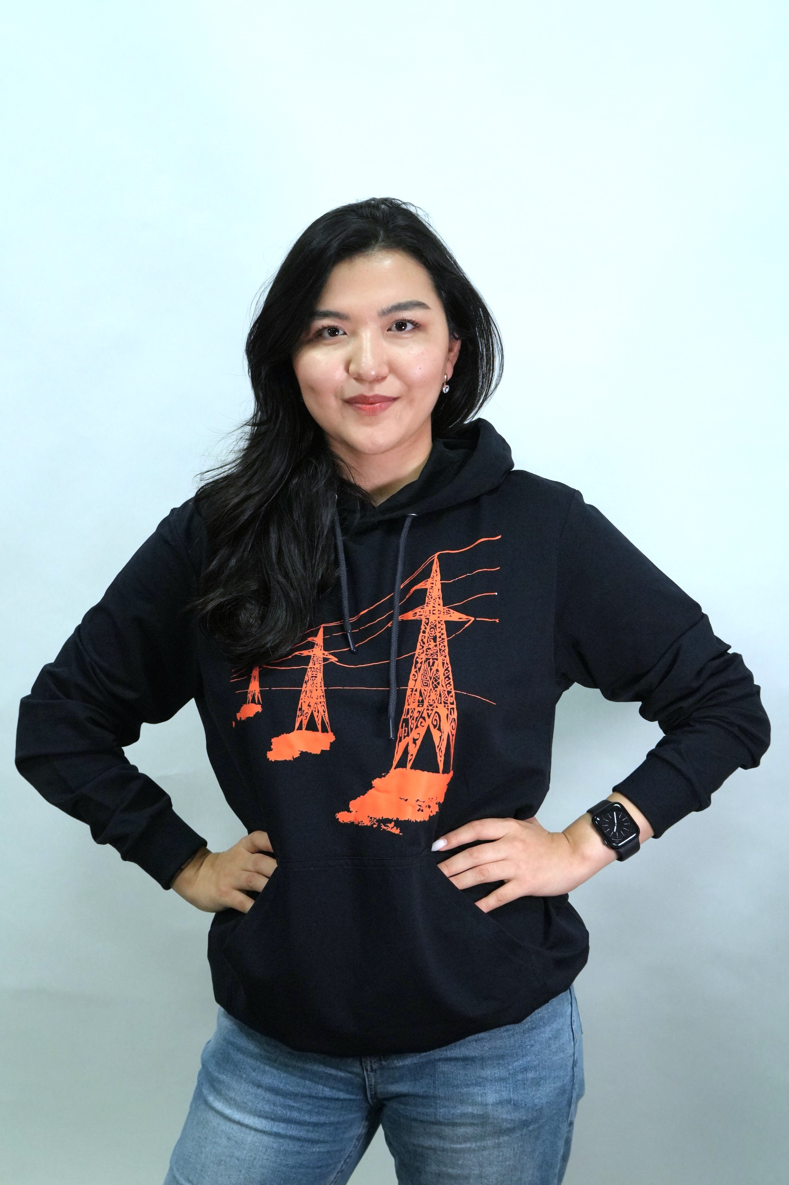 Электр желілері бейнеленген жасыл худи – Energo университетінің технология мен …